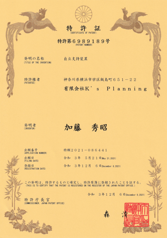 - 構造は日本国特許第6989189号で保護されており、権利者の許諾無しでは複製、製造、販売は出来ません
